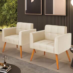 Você gosta de colecionar vários momentos memoráveis com sua família e amigos? Que tal recebê-los, com móveis de altíssima qualidade que só a D'Rossi tem? O Kit 2 Poltronas Elisa é adequado para você! Seu design retrô é a grande tendência do momento. Pode ser utilizado em diversos espaços da casa, em salas, hall de entrada, quartos, cozinhas, varanda, sacada, escritório, dentre outros. Contém as seguintes características: A estrutura é feita de madeira de Eucalipto 100% de reflorestamento, e os Pés Palito Castanho, além de serem resistentes e duráveis, suportam em média até 120 kg. Assento, encosto e braços, contém enchimento de espuma D-23 e é estofada em tecido Corino, que oferece muito conforto e resistência ao sentar, com aquela sensação de maciez e aconchego. Possui também, detalhes de costura no encosto e assento, resultando em um acabamento impecável, conferindo muito mais valor e elegância ao seu espaço. Para complementar a decoração com essas lindas poltronas, a dica é utilizar mantas, almofadas ou vasinho de flor. E pronto, seu cantinho estará perfeito para descansar e relaxar! Aqui, você encontra várias opções, para que seus amigos e familiares se sintam acolhidos. Garanta já seu Kit 2 Poltronas.