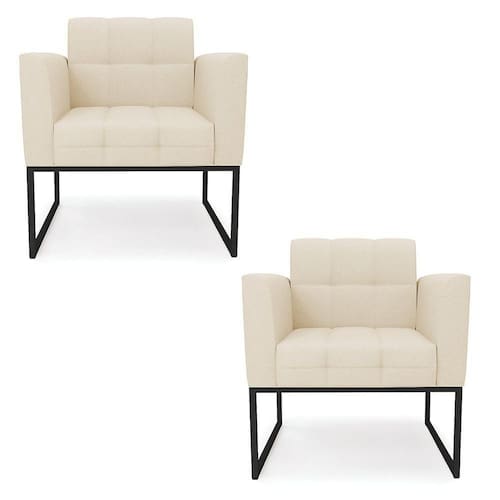 Kit 2 Poltronas Elisa Linho Base Metálica Industrial Preto - D'rossi Cor A19 Bege