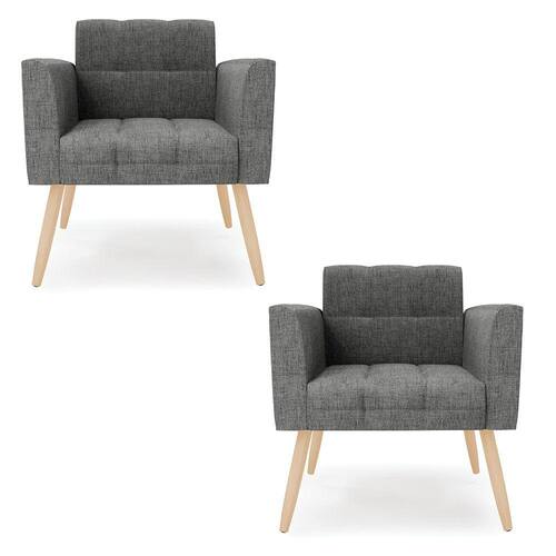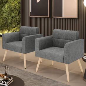 Você gosta de colecionar vários momentos memoráveis com sua família e amigos? Que tal recebê-los, com móveis de altíssima qualidade que só a D'Rossi tem? O Kit 2 Poltronas Elisa é adequado para você! Seu design retrô é a grande tendência do momento. Pode ser utilizado em diversos espaços da casa, em salas, hall de entrada, quartos, cozinhas, varanda, sacada, escritório, dentre outros. Contém as seguintes características: A estrutura é feita de madeira de Eucalipto 100% de reflorestamento, e os Pés Palito Natural, além de serem resistentes e duráveis, suportam em média até 120 kg. Assento, encosto e braços, contém enchimento de espuma D-23 e é estofada em tecido Linho, no tom Grafite, que oferece muito conforto e resistência ao sentar, com aquela sensação de maciez e aconchego. Possui também, detalhes de costura no encosto e assento, resultando em um acabamento impecável, conferindo muito mais valor e elegância ao seu espaço. Para complementar a decoração com essas lindas poltronas, a dica é utilizar mantas, almofadas ou vasinho de flor. E pronto, seu cantinho estará perfeito para descansar e relaxar! Aqui, você encontra várias opções, para que seus amigos e familiares se sintam acolhidos. Garanta já seu Kit 2 Poltronas.
