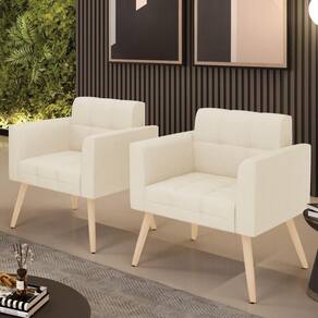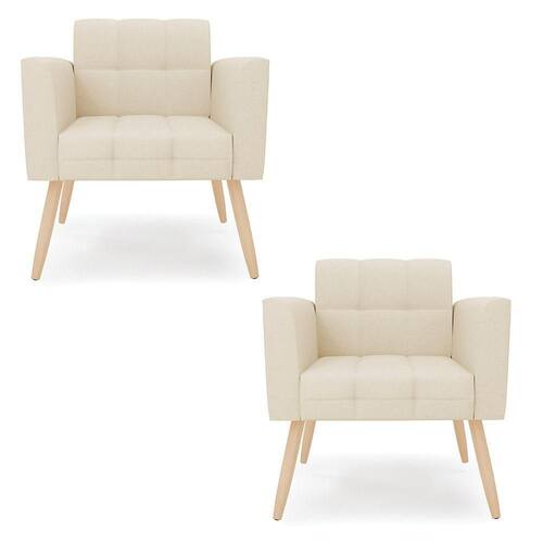 Kit 2 Poltronas Elisa Linho Pés Palito l - D'rossi Cor A19 Bege