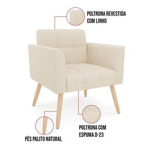 Kit 2 Poltronas Elisa Linho Pés Palito Natural - D`rossi Cor A19 Bege - Blush