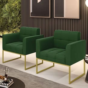 Kit 2 Poltronas Elisa Suede Base Metálica Industrial Dourado - D'rossi Cor Verde