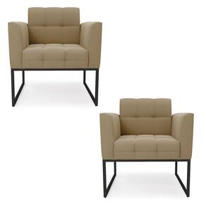 Kit 2 Poltronas Elisa Suede Base Metálica Industrial Preto - D'rossi Cor Marrom Rato