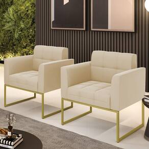 Você gosta de colecionar vários momentos memoráveis com sua família e amigos? Que tal recebê-los, com móveis de altíssima qualidade que só a D'Rossi tem? O Kit 2 Poltronas Elisa é adequado para você! Seu design retrô é a grande tendência do momento. Pode ser utilizado em diversos espaços da casa, em salas, hall de entrada, quartos, cozinhas, varanda, sacada, escritório, dentre outros. Contém as seguintes características: A estrutura é feita de madeira de Eucalipto 100% de reflorestamento, e a Base Industrial Metálica Dourada, além de ser resistente e durável, suporta em média até 120 kg. Assento, encosto e braços, contém enchimento de espuma D-23 e é estofada em tecido Suede, no tom Bege, que oferece muito conforto e resistência ao sentar, com aquela sensação de maciez e aconchego. Possui também, detalhes de costura no encosto e assento, resultando em um acabamento impecável, conferindo muito mais valor e elegância ao seu espaço. Para complementar a decoração com essas lindas poltronas, a dica é utilizar mantas, almofadas ou vasinho de flor. E pronto, seu cantinho estará perfeito para descansar e relaxar! Aqui, você encontra várias opções, para que seus amigos e familiares se sintam acolhidos. Garanta já seu Kit 2 Poltronas.