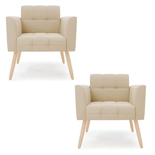 Você gosta de colecionar vários momentos memoráveis com sua família e amigos? Que tal recebê-los, com móveis de altíssima qualidade que só a D'Rossi tem? O Kit 2 Poltronas Elisa é adequado para você! Seu design retrô é a grande tendência do momento. Pode ser utilizado em diversos espaços da casa, em salas, hall de entrada, quartos, cozinhas, varanda, sacada, escritório, dentre outros. Contém as seguintes características: A estrutura é feita de madeira de Eucalipto 100% de reflorestamento, e os Pés Palito Natural, além de serem resistentes e duráveis, suportam em média até 120 kg. Assento, encosto e braços, contém enchimento de espuma D-23 e é estofada em tecido Suede, no tom Bege, que oferece muito conforto e resistência ao sentar, com aquela sensação de maciez e aconchego. Possui também, detalhes de costura no encosto e assento, resultando em um acabamento impecável, conferindo muito mais valor e elegância ao seu espaço. Para complementar a decoração com essas lindas poltronas, a dica é utilizar mantas, almofadas ou vasinho de flor. E pronto, seu cantinho estará perfeito para descansar e relaxar! Aqui, você encontra várias opções, para que seus amigos e familiares se sintam acolhidos. Garanta já seu Kit 2 Poltronas.