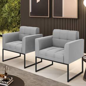 Você gosta de colecionar vários momentos memoráveis com sua família e amigos? Que tal recebê-los, com móveis de altíssima qualidade que só a D'Rossi tem? O Kit 2 Poltronas Elisa é adequado para você! Seu design retrô é a grande tendência do momento. Pode ser utilizado em diversos espaços da casa, em salas, hall de entrada, quartos, cozinhas, varanda, sacada, escritório, dentre outros. Contém as seguintes características: A estrutura é feita de madeira de Eucalipto 100% de reflorestamento, e a Base Industrial Metálica Preto, além de ser resistente e durável, suporta em média até 120 kg. Assento, encosto e braços, contém enchimento de espuma D-23 e é estofada em tecido Suede, no tom Cinza, que oferece muito conforto e resistência ao sentar, com aquela sensação de maciez e aconchego. Possui também, detalhes de costura no encosto e assento, resultando em um acabamento impecável, conferindo muito mais valor e elegância ao seu espaço. Para complementar a decoração com essas lindas poltronas, a dica é utilizar mantas, almofadas ou vasinho de flor. E pronto, seu cantinho estará perfeito para descansar e relaxar! Aqui, você encontra várias opções, para que seus amigos e familiares se sintam acolhidos. Garanta já seu Kit 2 Poltronas.
