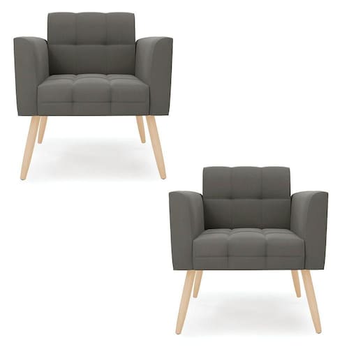 Você gosta de colecionar vários momentos memoráveis com sua família e amigos? Que tal recebê-los, com móveis de altíssima qualidade que só a DRossi tem? O Kit 2 Poltronas Elisa é adequado para você! Seu design retrô é a grande tendência do momento. Pode ser em diversos espaços da casa, em salas, hall de entrada, quartos, cozinhas, varanda, sacada, escritório, dentre outros. Contém as seguintes características: A estrutura é feita de madeira de Eucalipto 100% de reflorestamento, e os Pés Palito Natural, além de serem resistentes e duráveis, suportam em média até 120 kg. Assento, encosto e braços, contém enchimento de espuma D-23 e é estofada em tecido Suede, no tom Grafite, que oferece muito conforto e resistência ao sentar, com aquela sensação de maciez e aconchego. Possui também, detalhes de costura no encosto e assento, resultando em um acabamento impecável, conferindo muito mais valor e elegância ao seu espaço. Para complementar a decoração com essas lindas poltronas, a dica é utilizar mantas, almofadas ou vasinho de flor. E pronto, seu cantinho estará perfeito para descansar e relaxar! Aqui, você encontra várias opções, para que seus amigos e familiares se sintam acolhidos. Garanta já seu Kit 2 Poltronas.