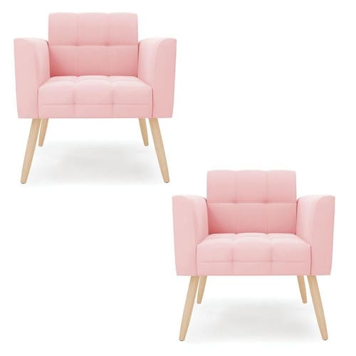 Você gosta de colecionar vários momentos memoráveis com sua família e amigos? Que tal recebê-los, com móveis de altíssima qualidade que só a DRossi tem? O Kit 2 Poltronas Elisa é adequado para você! Seu design retrô é a grande tendência do momento. Pode ser utilizado em diversos espaços da casa, em salas, hall de entrada, quartos, cozinhas, varanda, sacada, escritório, dentre outros. Contém as seguintes características: A estrutura é feita de madeira de Eucalipto 100% de reflorestamento, e os Pés Palito l, além de serem resistentes e duráveis, suportam em média até 120 kg. Assento, encosto e braços, contém enchimento de espuma D-23 e é estofada em tecido Suede, que oferece muito conforto e resistência ao sentar, com aquela sensação de maciez e aconchego. Possui também, detalhes de costura no encosto e assento, resultando em um acabamento impecável, conferindo muito mais valor e elegância ao seu espaço. Para complementar a decoração com essas lindas poltronas, a dica é utilizar mantas, almofadas ou vasinho de flor. E pronto, seu cantinho estará perfeito para descansar e relaxar! Aqui, você encontra várias opções, para que seus amigos e familiares se sintam acolhidos. Garanta já seu Kit 2 Poltronas.