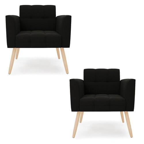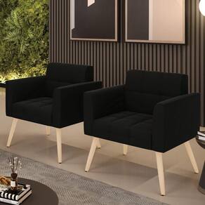 Você gosta de colecionar vários momentos memoráveis com sua família e amigos? Que tal recebê-los, com móveis de altíssima qualidade que só a DRossi tem? O Kit 2 Poltronas Elisa é adequado para você! Seu design retrô é a grande tendência do momento. Pode ser em diversos espaços da casa, em salas, hall de entrada, quartos, cozinhas, varanda, sacada, escritório, dentre outros. Contém as seguintes características: A estrutura é feita de madeira de Eucalipto 100% de reflorestamento, e os Pés Palito Natural, além de serem resistentes e duráveis, suportam em média até 120 kg. Assento, encosto e braços, contém enchimento de espuma D-23 e é estofada em tecido Suede, no tom Preto, que oferece muito conforto e resistência ao sentar, com aquela sensação de maciez e aconchego. Possui também, detalhes de costura no encosto e assento, resultando em um acabamento impecável, conferindo muito mais valor e elegância ao seu espaço. Para complementar a decoração com essas lindas poltronas, a dica é utilizar mantas, almofadas ou vasinho de flor. E pronto, seu cantinho estará perfeito para descansar e relaxar! Aqui, você encontra várias opções, para que seus amigos e familiares se sintam acolhidos. Garanta já seu Kit 2 Poltronas.