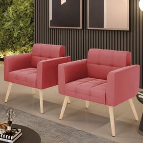 Você gosta de colecionar vários momentos memoráveis com sua família e amigos? Que tal recebê-los, com móveis de altíssima qualidade que só a D'Rossi tem? O Kit 2 Poltronas Elisa é adequado para você! Seu design retrô é a grande tendência do momento. Pode ser utilizado em diversos espaços da casa, em salas, hall de entrada, quartos, cozinhas, varanda, sacada, escritório, dentre outros. Contém as seguintes características: A estrutura é feita de madeira de Eucalipto 100% de reflorestamento, e os Pés Palito Natural, além de serem resistentes e duráveis, suportam em média até 120 kg. Assento, encosto e braços, contém enchimento de espuma D-23 e é estofada em tecido Suede, no tom Rosê, que oferece muito conforto e resistência ao sentar, com aquela sensação de maciez e aconchego. Possui também, detalhes de costura no encosto e assento, resultando em um acabamento impecável, conferindo muito mais valor e elegância ao seu espaço. Para complementar a decoração com essas lindas poltronas, a dica é utilizar mantas, almofadas ou vasinho de flor. E pronto, seu cantinho estará perfeito para descansar e relaxar! Aqui, você encontra várias opções, para que seus amigos e familiares se sintam acolhidos. Garanta já seu Kit 2 Poltronas.