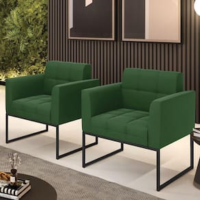 Kit 2 Poltronas Elisa Suede Verde Base Metálica Industrial Preto - D`Rossi