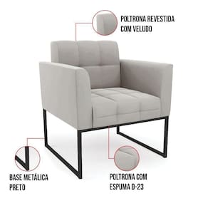 Você gosta de colecionar vários momentos memoráveis com sua família e amigos? Que tal recebê-los, com móveis de altíssima qualidade que só a DRossi tem? O Kit 2 Poltronas Elisa é adequado para você! Seu design retrô é a grande tendência do momento. Pode ser utilizado em diversos espaços da casa, em salas, hall de entrada, quartos, cozinhas, varanda, sacada, escritório, dentre outros. Contém as seguintes características: A estrutura é feita de madeira de Eucalipto 100% de reflorestamento, e a Base Metálica Industrial Preto, além de ser resistente e durável, suporta em média até 120 kg. Assento, encosto e braços, contém enchimento de espuma D-23 e é estofada em tecido Veludo, que oferece muito conforto e resistência ao sentar, com aquela sensação de maciez e aconchego. Possui também, detalhes de costura no encosto e assento, resultando em um acabamento impecável, conferindo muito mais valor e elegância ao seu espaço. Para complementar a decoração com essas lindas poltronas, a dica é utilizar mantas, almofadas ou vasinho de flor. E pronto, seu cantinho estará perfeito para descansar e relaxar! Aqui, você encontra várias opções, para que seus amigos e familiares se sintam acolhidos. Garanta já seu Kit 2 Poltronas.