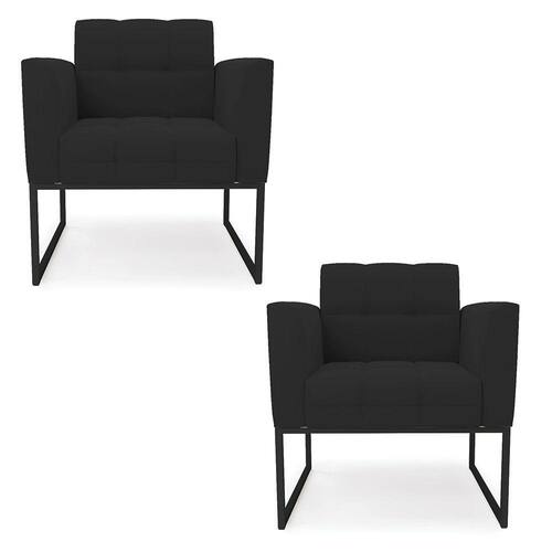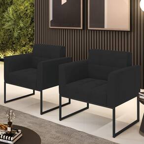 Kit 2 Poltronas Elisa Veludo Base Metálica Industrial Preto - D`Rossi