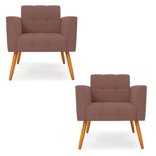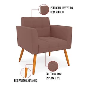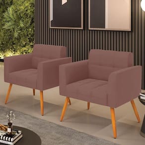 Kit 2 Poltronas Elisa Veludo Pés Palito Castanho - D'rossi Cor Rose