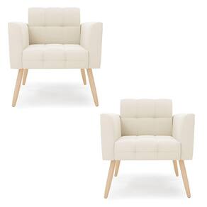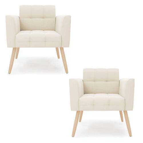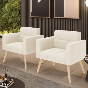 Kit 2 Poltronas Elisa Veludo Pés Palito Natural - D`Rossi - Bege