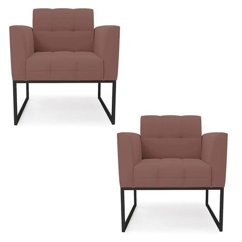 Kit 2 Poltronas Elisa Veludo Rosê Base Metálica Industrial Preto - D`Rossi