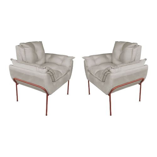 Kit 2 Poltronas Escritório Base Cobre Suede Bege - Vallisa Decor
