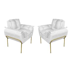 Kit 2 Poltronas Escritório Base Dourada Suede Branco - Vallisa Decor