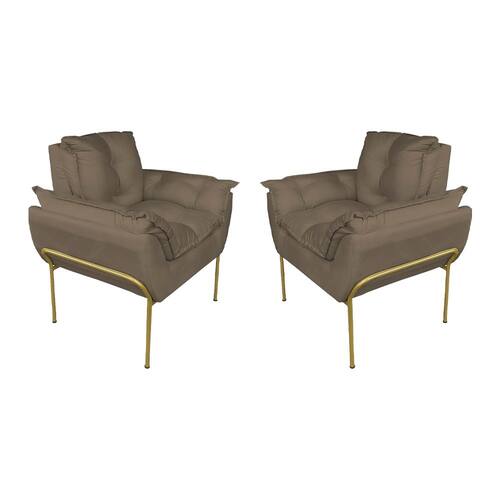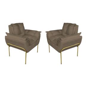 Kit 2 Poltronas Escritório Base Dourada Suede Cappucino - Vallisa Decor - Preto