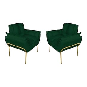 Kit 2 Poltronas Escritório Base Dourada Suede Verde - Vallisa Decor
