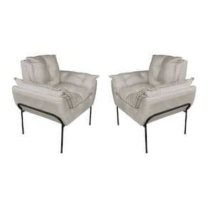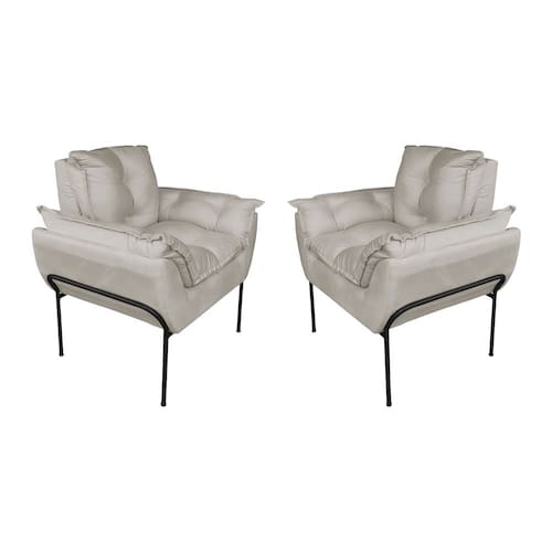 Kit 2 Poltronas Escritório Base Preta Suede Bege - Vallisa Decor