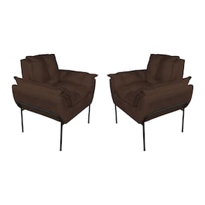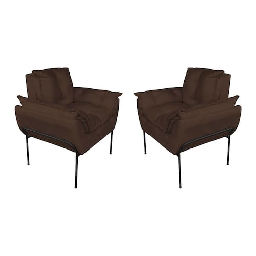 Kit 2 Poltronas Escritório Base Preta Suede Marrom - Vallisa Decor