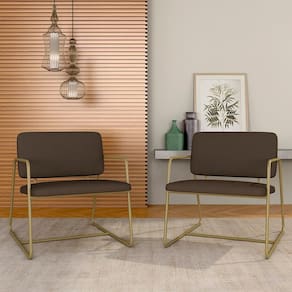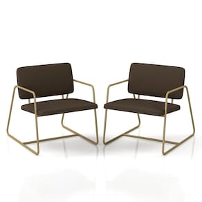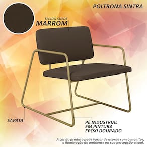 Detalhes Técnicos das Poltronas - Assento e Encosto Tapeçados, Estofados e Fixos - Espuma do Assento e do Encosto: D20 - Tonalidade: Dourado/Suede Marrom - Material: Metalon - Medida Poltrona: A: 75CM x L: 68CM x P: 85CM - Medida do chão até o assento: 45cm de altura - Poltrona suporta até 120KG - Montagem: Difícil