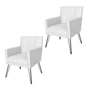 Kit 2 Poltronas Estofadas Para Escritório Pés de Ferro Onix Suede Branco - LM DECOR