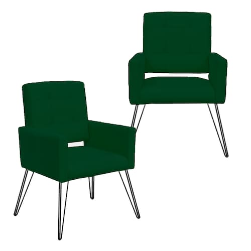 Kit 2 Poltronas Estofadas Para Sala Comercial Pés de Ferro Camila Suede Verde - LM DECOR