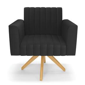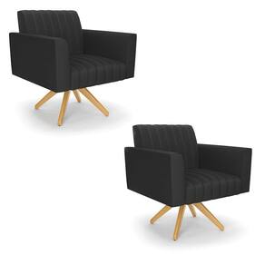 Kit 2 Poltronas Giratória Viena Gomada Corino Base de Madeira MA30 - D`Rossi - Preto