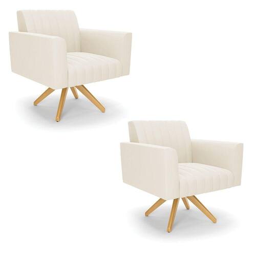 Quer uma decoração única e sofisticada? A Poltrona Viena é ideal para quem está em busca de um móvel versátil e diferenciado. Esse tipo de peça é ideal para ambientes modernos e descontraídos. Vem com uma ideia totalmente diferente, devido sua curva e forma suave, os detalhes gomados do tecido são tendências de decoração atuais. O tom Bege vem ganhando cada vez mais espaço no mercado, uma cor que traz elegância e combina com vários tipos de decoração. Uma dica legal de complemento é escolher almofadas que combinem com a poltrona. Sua estrutura é confeccionada em madeira de eucalipto proveniente de reflorestamento, o estofamento do assento é composto de espuma prorelax D-28 no encosto, e é revestido em Veludo um tecido aconchegante, resistente e extremamente luxuoso. Sua sustentação é dada pela Base Giratória Madeira MA30, suportando em média até 115 Kg. Crie um lindo efeito visual, em qualquer lugar da sua casa ou escritório! Garanta já seu Kit 2 Poltronas Viena.