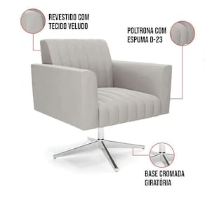 Quer uma decoração única e sofisticada? A Poltrona Viena é ideal para quem está em busca de um móvel versátil e diferenciado. Esse tipo de peça é ideal para ambientes modernos e descontraídos. Vem com uma ideia totalmente diferente, devido sua curva e forma suave, os detalhes gomados do tecido são tendências de decoração atuais. O tom Cinza vem ganhando cada vez mais espaço no mercado, uma cor que traz elegância e combina com vários tipos de decoração. Uma dica legal de complemento é escolher almofadas que combinem com a poltrona. Sua estrutura é confeccionada em madeira de eucalipto proveniente de reflorestamento, o estofamento do assento é composto de espuma prorelax D-23 no encosto, e é revestido em Veludo um tecido aconchegante, resistente e extremamente luxuoso. Sua sustentação é dada pela Base Giratória Cromada, suportando em média até 120 Kg. Crie um lindo efeito visual, em qualquer lugar da sua casa ou escritório! Garanta já seu Kit 2 Poltronas Viena.