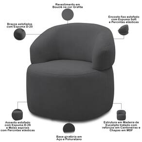 Seja para compor a sala de estar, living, quarto ou até escritório e recepção, essa poltrona giratória será o grande trunfo; afinal, é prática, confortável e funcional, podendo ser aproveitada para integrar ambientes e, assim, deixar o dia a dia mais dinâmico. Além disso, o design curvo faz desse estofado uma poltrona orgânica, ou seja, transmite fluidez e modernidade sem igual. Não espere mais. Garanta já a sua e deixe o seu espaço aconchegante, elegante e acolhedor!