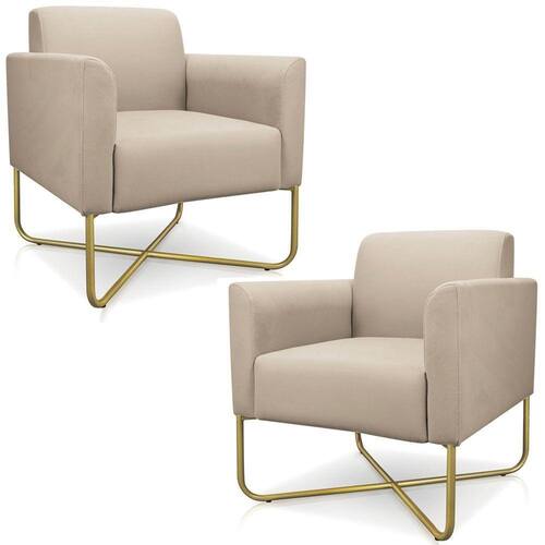Kit 2 Poltronas Decorativas Isabella Base X Suede Bege/dourado - Gran Belo
