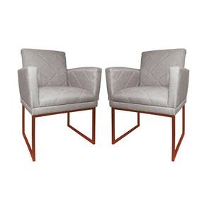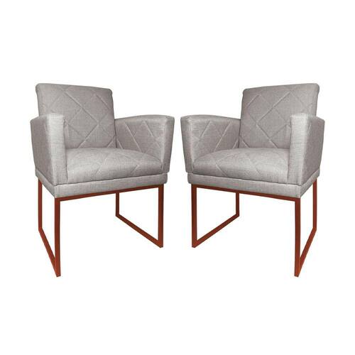 Kit 2 Poltronas Klara Sala Base Metálica Cobre Linho - Vallisa Decor - Bege