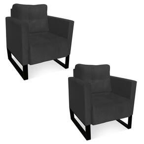 Kit 2 Poltronas Livia Suede Grafite Base Industrial Preto - D'rossi
