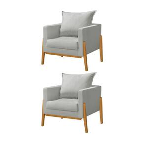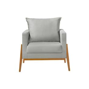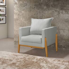 Kit 2 Poltronas Living Base e Pés em Madeira Maciça Madagascar Veludo Cinza Claro
