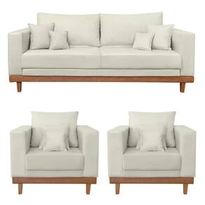 Você receberá 3 volumes, ou seja, um Kit 2 Poltronas Living + Sofá 2 Lugares Base Madeira Suede