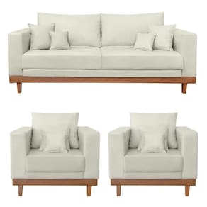 Você receberá 3 volumes, ou seja, um Kit 2 Poltronas Living + Sofá 3 Lugares Base Madeira Suede