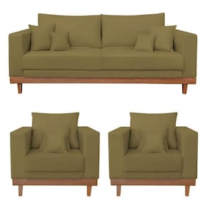 Você receberá 3 volumes, ou seja, um Kit 2 Poltronas Living + Sofá 3 Lugares com Base Madeira Suede