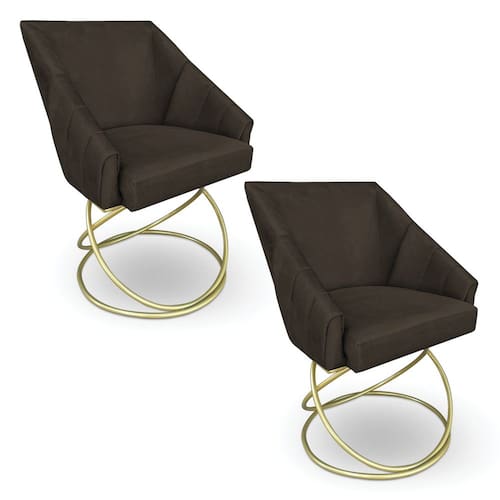Kit 2 Poltronas Luxo Alana Suede Marrom Base de Ferro Dourado - Pallazio