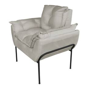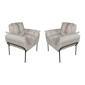Kit 2 Poltronas Luxo Suede Bege Base de Ferro Preta - Vallisa Decor
