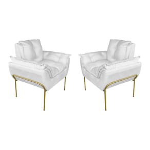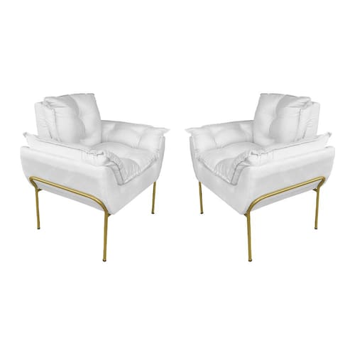 Kit 2 Poltronas Luxo Suede Branco Base de Ferro Dourada - Vallisa Decor