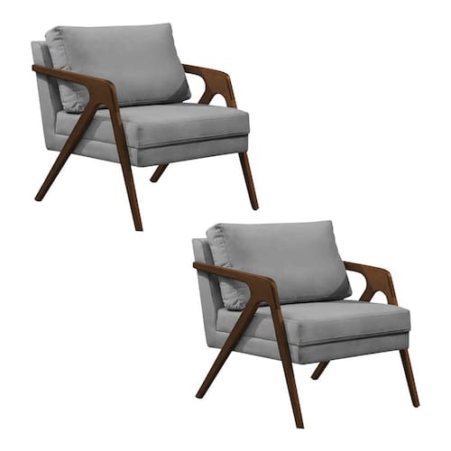 Tipo: Poltrona Modelo: Mona Monique Tecido: Veludo Cor do Tecido: Cinza Cor da Base: Natural Base em Madeira Maciça