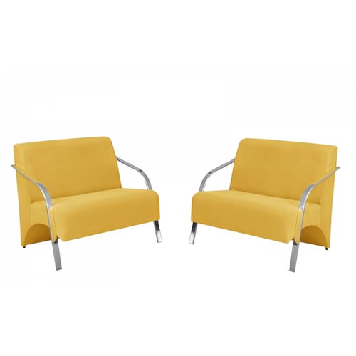 Kit 2 Poltronas Namoradeira 2 Lugares Vênus Braço Alumínio D Salla Suede - Amarelo
