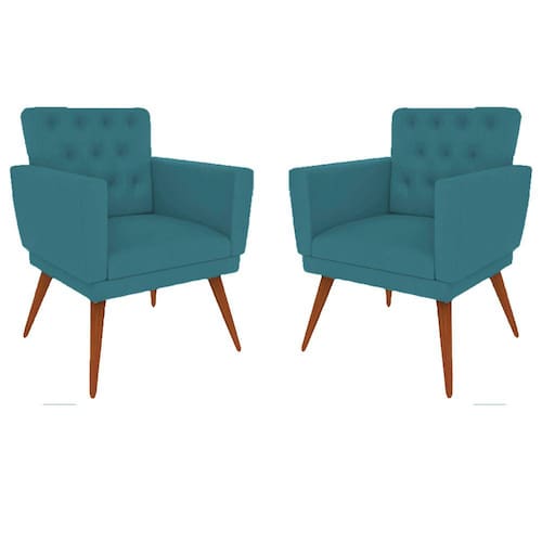 Kit 2 Poltronas Nina com Capitone - Azul Turqueza - Azul Petróleo