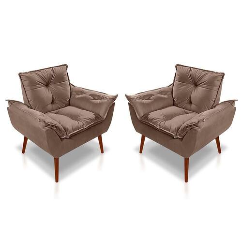 Kit 2 Poltronas Opala Decorativa p/ Sala, Quarto e Recepção Suede Cappuccino - LM Decor