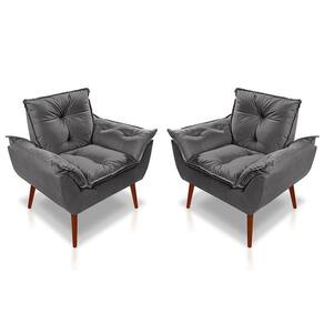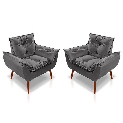 Kit 2 Poltronas Opala Decorativa p/ Sala, Quarto e Recepção Suede Cinza Escuro - LM Decor