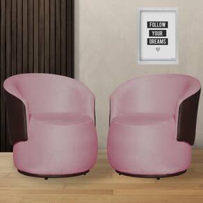 Kit 2 Poltronas Organica Beatriz Suede Rosa C/ Composê Corano Marrom - LM DECOR