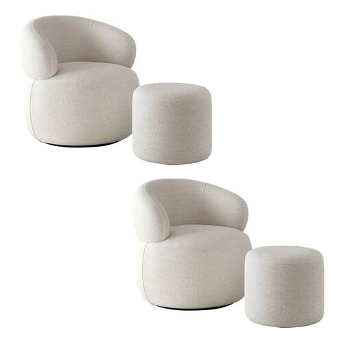 Kit 2 Poltronas Orgânica Giratória Eloah 2 Puff Ello Luxo Bouclé Italiano Sala - Off-white - BRANCO